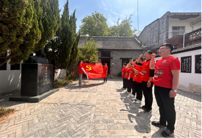 在董天知將軍的雕像前,參加活動的黨員整齊列隊,懷著無比崇敬的心情,莊嚴(yán)地舉起右手,重溫入黨誓詞?!拔抑驹讣尤胫袊伯a(chǎn)黨……”鏗鏘有力的誓言響徹故居上空,久久回蕩。這不僅是一次對革命先烈的莊嚴(yán)告慰,更是黨員們對自己初心使命的再次堅定與強(qiáng)化。